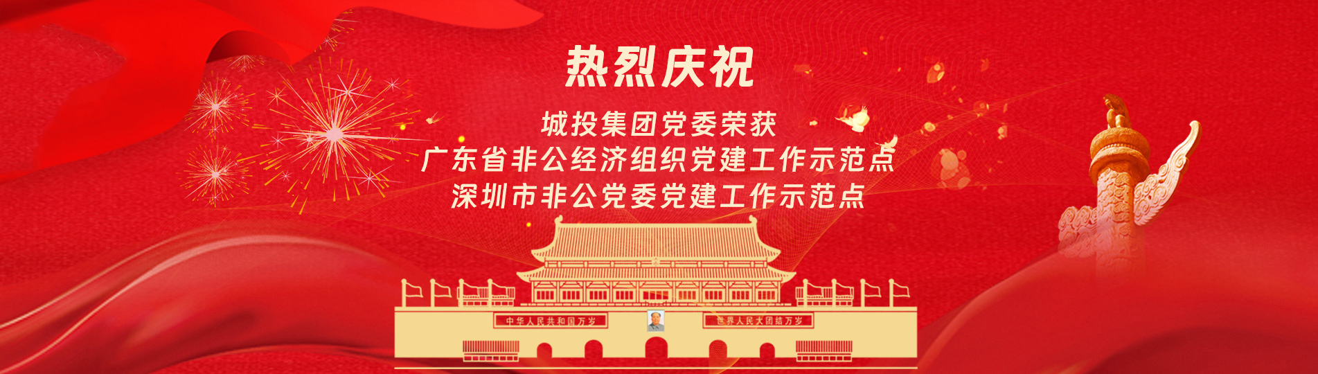 在上級黨委的正確領導下,在城投集團的大力支持下,集團黨委緊緊圍繞企業發展戰略,將黨建引領核心貫穿始終,以五心工程(即思政建設核心工程、經營發展中心工程、企業文化向心工程、黨建品牌匠心工程、服務基層愛心工程)為抓手,大膽探索,勇于突破和創新,不斷形成城投黨建特色,有效輸出城投實踐經驗,充分發揮紅色引擎作用,先后獲得深圳市非公黨委黨建工作示范點、深圳市兩新組織黨建工作示范點、深圳市文明單位深圳市先進基層黨組織、廣東省非公有制經濟領域黨建工作示范點等榮譽稱號。